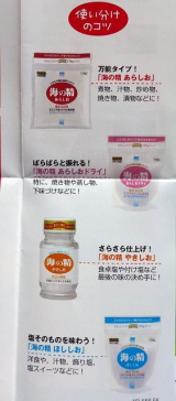 海の精ショップから送付物が到着 「海の精」さんのモニターに当選しました! 中に入っていたのは、「海の精 あらしお」の小さな袋と、小袋3つ 「海の精」は、天日と平釜を使った、伝統的製法で作ったお塩伊豆大島産なんですね 「あらしお」の袋の裏 【シンプルクッキングでちがいをお試しください!】… 2017/11/21