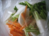 伊豆大島の海水で作ったこだわりの塩、「海の精」とうふの塩で料理の記事につづき、今度は浅漬けのもとを使ってみたこの中に個包装の浅漬けのもと1つで100200グラムの野菜が漬けられる10袋入っていたオーソドックスに大根と人参を海の精に、自社で作ったとれたてのだし(北海道産の利尻昆布と羅臼昆布… 2011/11/16
