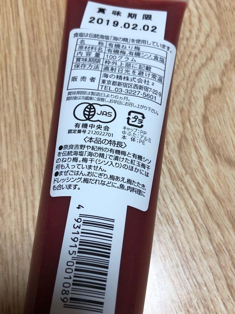 海の精 国産有機・紅玉ねり梅(チューブ)100g