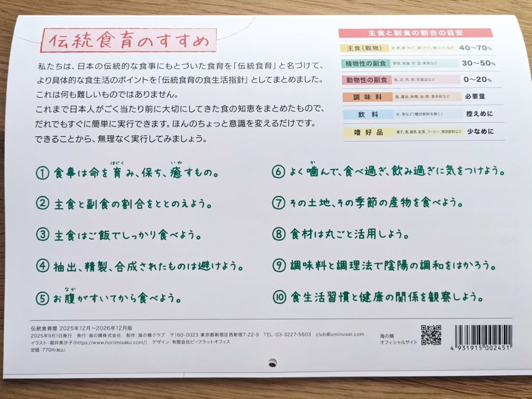 #伝統食育暦 #カレンダー #食育 #ていねいな暮らし #monipla #uminosei_fan#marikoのススメ