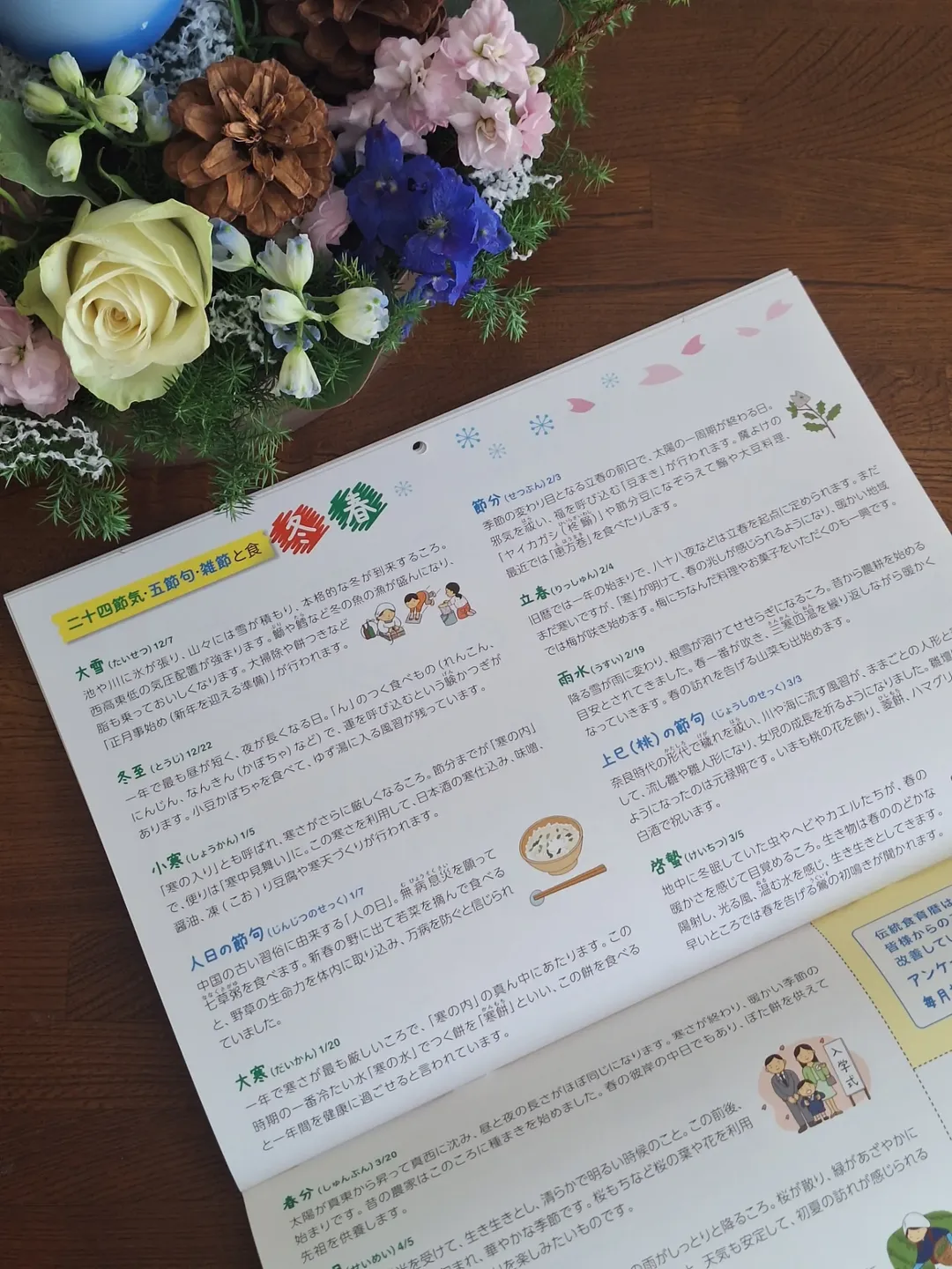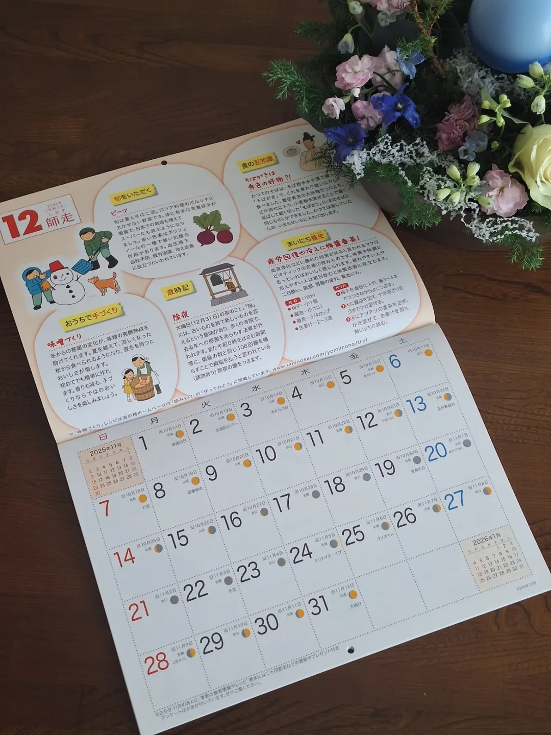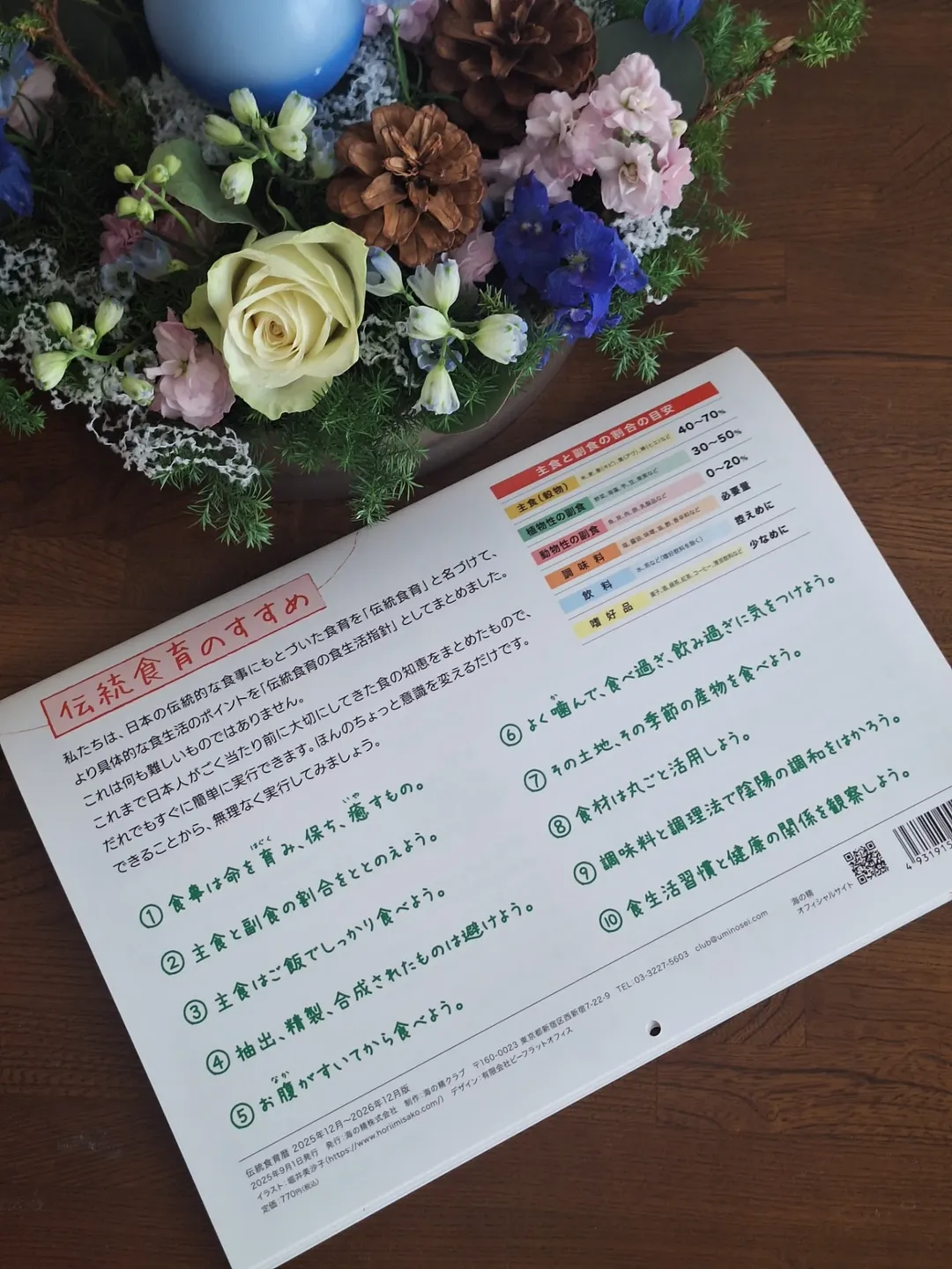 . もう11月も終盤に近づき、来年のカレンダーもちらほら あっと言う間に今年も終わり!早いなぁー💦 そして、今日11/24は和食の日 と言うことで 2026年度版 日本の「伝統食育暦」 中身をチラ見せ😁 日本の伝統的な食事にもとづいた、これまで日本人がごく当たり前に大切にしてきた食の知恵が詰まってます✨️ 12月からあるので、早速来週から使わせていただきます😌 ちなみに、この日のおしながき ・豚肉ともやしのカレー醤油炒め ・かぼちゃの炊いたん ・トマト入りもずく酢 ・牡蠣の佃煮(自家製) ・キムチ(自家製) ・豆腐とえのきのお味噌汁 ・じゃこ胡麻のせ玄米おにぎり ・キウイフルーツ ・ほうじ茶 なるべくいつも(いや、そうじゃない時もあるけど😓)少しずつ色々なものが摂れるように、品数を多くしてバランスの良い食事を心がけてはいるのですが、なかなか理想通りにはいきませんね💦 食育暦で勉強させていただきます☺️ #PR #海の精ショップ #海の精 #海の精ショップ #伝統食育暦 #カレンダー #食育 #ていねいな暮らし #monipla #uminosei_fan #おうちごはん #お惣菜ランチ #寄せ集めランチ #和ごはん #和食ごはん #和食 #和食の日 #まごわやさしいごはん と思ったら「い」がない😅 #まごわやさしい献立 #まごわやさしい #伝統食 #日本の伝統食 #暮らしを楽しむ