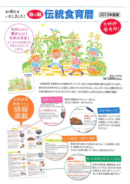 海の精クラブが提唱する「伝統食育」をカレンダーにまとめました。