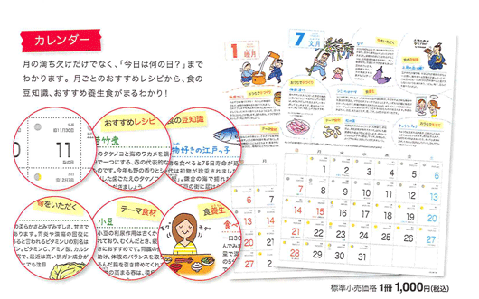 食に関する情報を中心に構成し、月齢、旧暦、二十四節気なども盛り込んでいます。