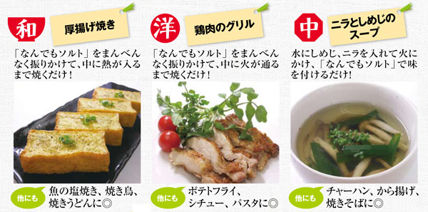 なんでもソルトは、国産の伝統海塩「海の精 やきしお」に、