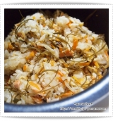 ひじき、人参、油揚げ、ごま、乾燥小エビ、三つ葉 の炊込みごはん