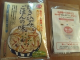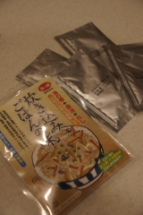 さて、炊き込みご飯のもとが送られてきました 一合ごとにパックされてるので使いやすいですねさっそくごはんにこんな感じそして完成あまり濃くなく、さっぱりしてますね食べやすいかもうちは毎日1合しか炊かないのでこのパックはちょうどいい(´∀`)海の精シ 2014/09/09