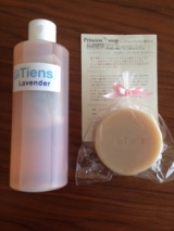 アンティアンの石鹸シャンプー モニターさせていただきました 黒蜜石鹸(写真右)とラベンダービネガーリンス(左) 黒蜜石鹸全成分 石鹸素地(オリーブオイル、ココナッツオイル パームオイル、精製水、苛性ソーダ) 有機栽培ラベンダーエッセンシャルオイル… 2014/03/05