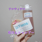 . . . unTiens 『石鹸シャンプー(黒みつ)&ラベンダービネガーリンス』 . . . 植物たちの力で 頭皮にも、髪にも、環境にも優しい。 . . ✔石鹸シャンプー 黒みつ 頭皮を元気に整えてくれる 有機栽培無農薬ラベンダー精油、 髪を育ててくれる有機栽培無農薬ローズマリー精油、 デオドラントと爽快感のペパーミント精油、 頭皮に良いものばかりを配合。 日本伝統の髪のトリートメント剤である黒みつを配合した 美しく光り輝く髪を育てるための石鹸シャンプー。 . ✔ラベンダービネガーリンス ビネガーとハーブ、エッセンシャルオイルで作った石鹸シャンプー専用リンス。 石鹸シャンプーはアルカリ性で、髪のキューティクルが開いてきしみを感じます。 酸性のビネガーリンスでアルカリを中和させることにより キューティクルが閉じきしみを解消。 石鹸カスもしっかり落とし頭皮を清潔にします。 . . . ーーーーーーーーーーーーーーーー . . . 大好きなアンティアン。 今まで、ラベンダーハニーやベイビー、漆黒を使ってきたけど 石鹸シャンプーは久々で5年ぶり?かな♥ . 石鹸シャンプーは触るととてもしっとりとした感触。 すごーく香りがよく、袋から開けると ぶわっといい香りが広がるよ。 泡立ちがすごく良くて 石鹸シャンプーを軽く撫でるだけでいいので コスパもとてもいいと思う。 . しっかりと泡立ち、途中で泡もへたれずに 頭皮まで優しく丁寧に洗うことが出来ます。 洗い流すと、キュッキュッとします。 私はぎしぎしとはしませんでしたが、 やはりキュッキュッとする感じはあります。 . そこで、このきしみを解消してくれるのが ビネガーリンスです。 私はラベンダービネガーリンスを使っていますが ローズマリーもあるよ。 . 蓋を開けると、ビネガーの酸っぱい香りが強いです。 ボトルの中にはラベンダーが入っている袋??みたいのが入ってます。 薄い茶色いサラサラとシャバシャバしたテクスチャー。 いやね、このリンスがまたすごいのよ。 石鹸シャンプー後のキュッキュッとした髪の毛に馴染ませます。 かなりシャバシャバとしてるので ちょっとずつ髪の毛に塗布したりしていたんだけど 最近ではボトルごと直接髪の毛に掛けています。 ドバドバ出てくるわけではいので 直接も掛けやすいよ。 このリンスを髪の毛に馴染ませると 魔法なの!?って思うほど、髪の毛濡れてるのに、ふわっとするんです。 キュッキュッとしてた、髪の毛がふわふわふっくらします。 これにはかなり驚いたよ。 髪の毛の質感が変わるってすごくない? しかも、このシャバシャバテクスチャー。 . 正直ビネガーのtheお酢!って感じが強め。 娘も一緒に使ってるんだけど、娘は苦手…と言ってます。 ですが、洗い流すと、このにおいはほとんど感じなくなります。 . ドライヤーすると、これまたびっくりしたんだけど いつもより乾くのが早い。って感じました。 初めて使った日、すごく驚いたよ。 そして、髪の毛のふわふわ感がたまりません。 あくまでも個人の感想なんだけど、 私は頭皮の痒みが落ち着いてきた気がしていて すごく気に入ってるよ。 娘もアトピーで頭皮が痒くなりやすくステロイドを使ってるのだけど 娘も落ち着いてきてる気がしてる。 . 個人的には、頭皮へのアプローチをしたい方に とてもおすすめです♥ . . . ーーーーーーーーーーーーーーーー . . . #untiens_azabu10ban #monipla #untiens_fan 2022/11/11