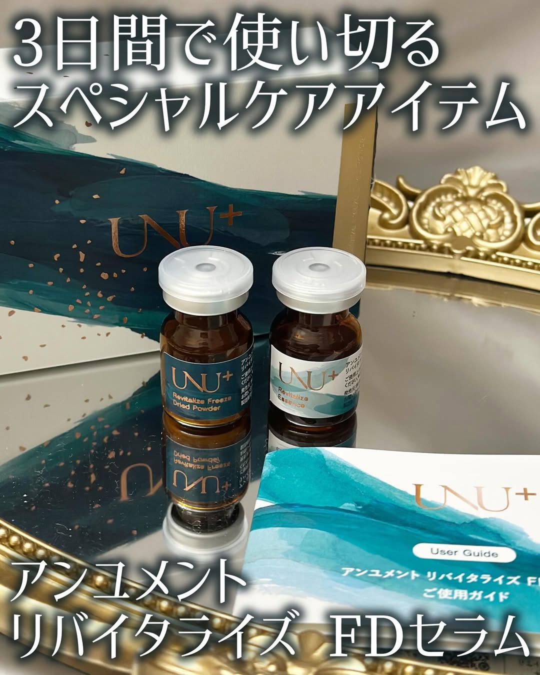 . ・──*──୨୧──*──・ 先日参加した、RIKACOさん主催の LOVE GIVES LOVE Gathering vol.3 そこで出会ったのがUNU+ ment︎💕︎ アンユメント リバイタライズFDセラムを 早速自宅で使用してみたよ☝️ こちらはフリーズドライ化した ヒトサイタイ間葉幹細胞順化培養液を 使用直前にエッセンスと混ぜて 3日間で使い切る集中美容液なの🫧 乾燥による小ジワやくすみなどの 年齢肌にアプローチするだけでなく 定期的に使うことにより角質層のすみずみまで うるおいを届け肌を健やかに整えてくれるんだって 少しとろみのあるテクスチャーで 500円硬貨大を朝晩使用するよ 手のひらに広げたらお顔全体に馴染ませ ハンドプレスしていくよ 気になるところには重ね付け☝️ 私は手のひらに余ったのも首に塗ったよ🫣 香りにもこだわっていて、天然精油100%の 繊細なブレンドによるやさしい香りが ふわーっと包み込んでくれてお気に入り🫶 正直、3日でこの金額!?と思ったんだけど、 エステ代わりに月に1回のスペシャルケアとして 定期的に使いたいと思えるアイテムだったよ︎💕︎ すべての肌質の方におすすめだよ! みんなもぜひチェックしてみて🫶 🛒 I T E M ▫️ アンユメント ▫️リバイタライズFDセラム ▫️税込17,600円 ・──*──୨୧──*──・ #PR #アンユメント #エイジングケア #ウェルネスケア #幹細胞コスメ #エクソソーム #幹細胞上清液 #monipla #unument_fan