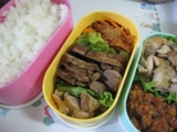 今日のお弁当です♪豚もも肉の紅茶煮⇒お酢がなくなってしまい、「バルサミコ酢」で代用しましたが、美味しいと良いなぁ!鶏もも肉のお酢煮にんじんの味噌和えミートソースお米(300g)本日は、残業ということで、量も多めにしましたぁ土曜日は、川崎に引っ越すマンションの内覧へ行ってきましたぁ… 2010/10/18