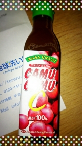 秋と言えば食欲の秋、と言う訳で果物も美味しいですね(^_^;食べてばっかり) そして先日今まで見た事も聞いた事も無い果汁と出会う事が出来ましたそれは↓ 「カムカム果汁」です ビタミンCとポリフェノールを豊富に含んだ果物でそのまま飲む時は水で薄めます(^_^;原液は酸っぱすぎ… 2015/09/09