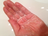 力を入れてこするとフスマ(麦ぬか)でお肌を傷つけることがあります。 少量で試してからお使いください。