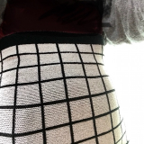 ウインドウペインという、シンプルな窓枠の模様。 トップスの下からちらりと見えると、ファッションのすてきなアクセントになること間違いなし。あえて短めトップスに合わせて、重ね着のように見せるのもおすすめです! |