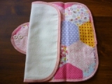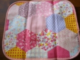 パッチワーク 六角形のパッチワークが、リズムよくいろんな表情を見せてくれるデザイン。 全部で何種類の柄があるか、見てみてくださいね。 |
