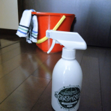 または、湿らせた雑巾の方にシュッとしてから、床を拭いてください。