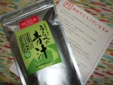 10月に占部大観堂製薬さんのうらべの青汁の10日間のモニターに選んでいただきましたその時のお料理企画の混ぜまぜ部門で入賞して「うらべの青汁」1袋のお届けものがあり 2011/11/06