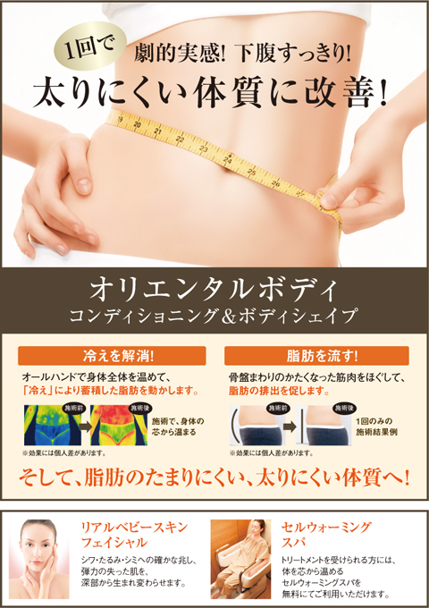 [2012/04/03] 【太りにくい体質に改善!】オリエンタルボディ ボディシェイプ モニター募集!!