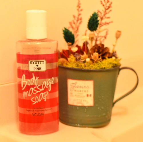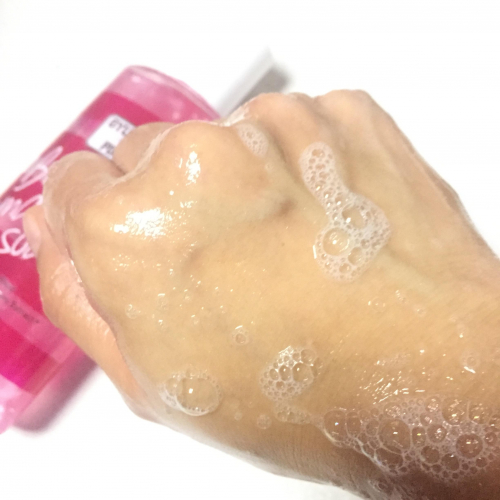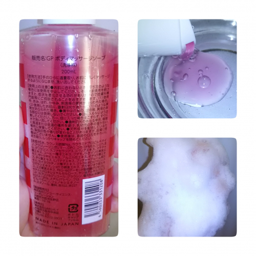 少し派手めのボトルのイメージ通り、ソープがピンク色で可愛いです テクスチャーはゆるいジェルといった感じ 香りももう少しイケイケかと思った笑 フルーティー&セクシーな香りだそうでリラックスしながらマッサージができます スクラブが入っているけど細かいので痛くないし角質ケアを実感できました… 2019/07/16