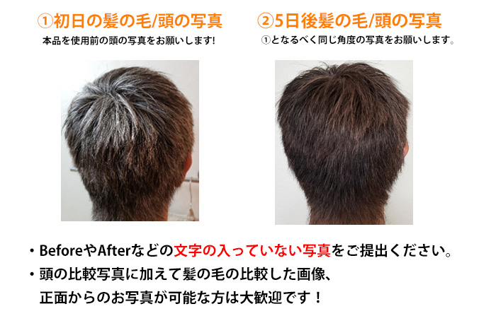 の4枚(もしくは5枚)のお写真と、効果に関する感想や変化などを詳しく事後アンケートにて回答してください。