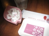 昨年オープンして気になっていたお店に やっと行けました桜珈琲美味しそうなケーキやパンも売っていますコの字型になった中庭にはしだれ桜 和の空間春にはきれいに咲いているでしょうねカップコレクション じっくり見たいけれど カウンターに座るには勇気がいります角砂糖にもお店のロゴが 可愛いっ桜オリジナルブレン… 2012/12/25