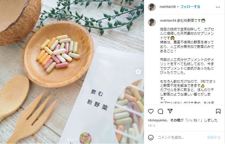 人工成分無添加で野菜のみのサプリで