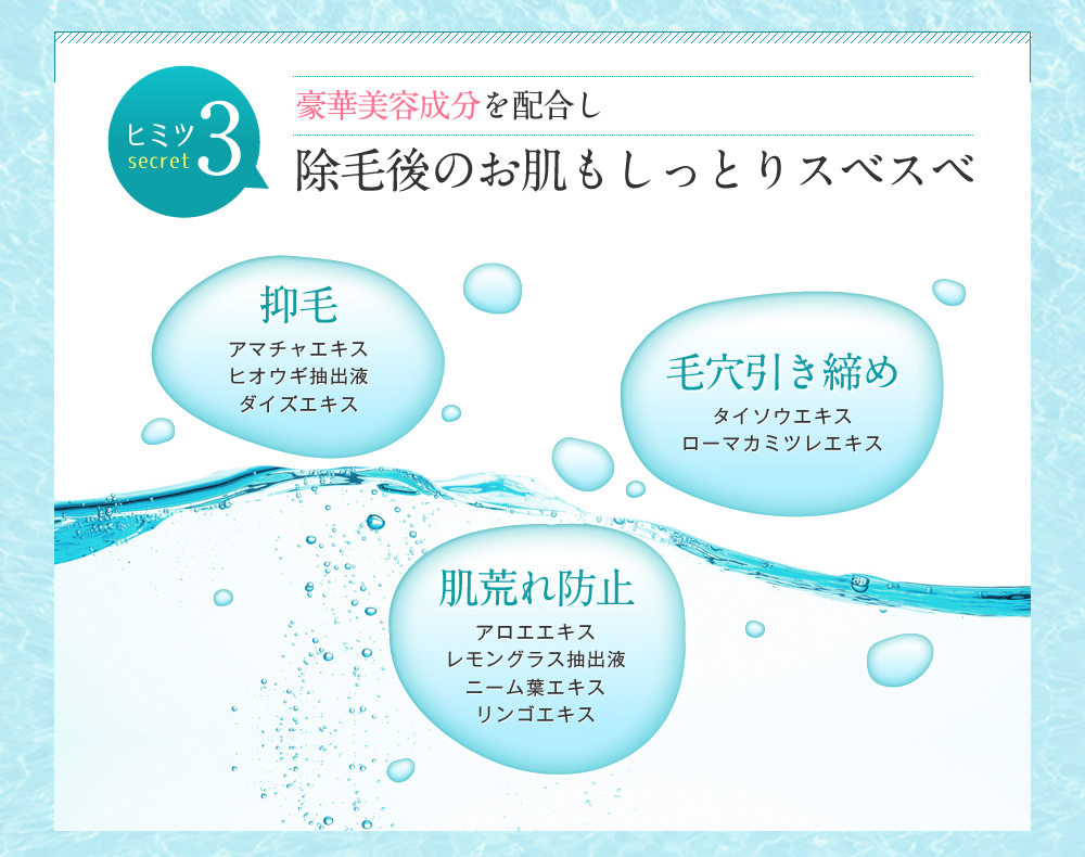 ※除毛直後のお肌に石けんなどは、使用しないでください。