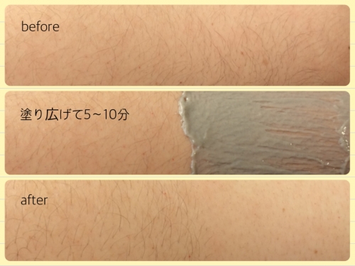 200gの大容量で容器にスポンジが付いているため、手を汚さずに除毛クリームを塗布することができます 除毛クリームは泥パックの様な灰色でなめらかなテクスチャです 乾いた状態の皮膚に塗り広げた後 5〜10分放置しますが、肌がピリピリしたり痒くなったりするなどの肌刺激は感じません… 2017/05/21
