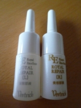 ベルリッチ化粧品 ロイヤルリペアは、 コラーゲン、エラスチン、ヒアルロン酸が 天然純度100%でブレンドされた美容液 使ったのは、朝用のさっぱりタイプと 夜用のリッチタイプのミニボトル これで、だいたい10日間くらいは使えた どちらも匂い 2011/12/09