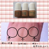 【ベルリッチ化粧品】オイルフリーリキッドファンデーションを使ってみました(・∀・)ノ このファンデーション、他の色と混ぜて「自分だけの肌色」を作れるってところに惹かれたんです♪ なんだか楽しそうです(o´ω`o) 使うのはこちらの3本です まずは手でどんな感じかお試し♪ 私は黄味よ… 2013/01/25