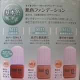 オイルフリーのリキッドファンデーション最近大人のにきびで悩み中なので、オイルフリーなのは嬉しいです M11は白腹の色、M13は一般的な肌色、M12は健康 2013/01/24