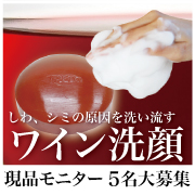 保湿成分(ワイン「ポリフェノール」、ローズマリー、リコピン)を配合た洗顔石鹸です。 くすみ、しわ、シミの原因となる汚れを洗い流して、お肌のターンオーバーを助けます。 ▼詳細ページはこちらから▼ http://www.shop-vida.com/ec/products/detail.php?product_id=57 石鹸の赤色は、ワインとリコピンの色です。