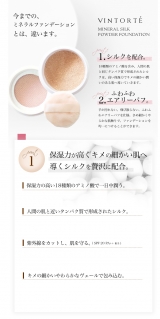 ミネラルファンデーション「VINTORTE(ヴァントルテ)」。つけたまま眠れる。石鹸で落ちる。肌に優しいミネラルコスメで、肌本来の美しさを引き出します。天然ミネラル成分100%・シルク配合のミネラルシルクファンデーション、うるおい豊富な美容液ミネラルリキッドファンデーションで、毎日いつでも輝く美しさを。安心の全額返金保証も。
