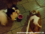 今日は神奈川新聞花火大会天気予報によると午後から「まとまった雨」との事開催されるかな〜(荒天の場合は2日)夏は夜散歩のさるん子家だいたいいつもこんな感じで近場をグルグルお散歩です(画像悪し)夜とはいえ暑いので水分補給を数回そして、私達も水分補給 2013/08/01