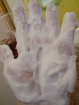 2種類のオーガンジー生地が4層に重なり、 密度の高い泡を瞬時に作る泡立てネット |