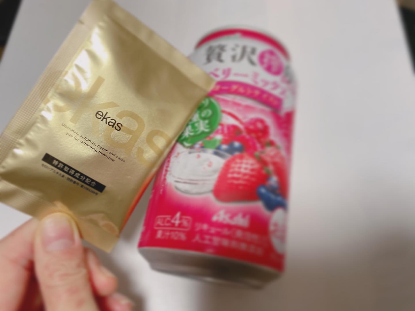 💕お酒大好き💕 な私ですが、二日酔い対策はバッチリしております😊👍✨ 【ekas】を飲むだけです❗️ 1袋4粒入りのカプセルタイプで個包装になっているから、 持ち運びしやすい(^ ^) 常にバッグ👜に入れていて、 急な飲み会🍻も怖くない😌 ekasのおかげで、飲み会を存分に楽しめるようになりました😆✨✨ 二日酔いを気にしたら楽しめないもんね💦 もうコンビニ🏪でドリンク剤は買わなくなったよ(*≧∀≦*) ・ ・ ・ #エカス #二日酔いに効く #二日酔い対策 #二日酔い防止 #二日酔いなし #二日酔い #amazonで #ekas #monipla #vnst_fan