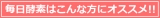 【TVで話題♪】ダイエット便秘の悩みを解決!『毎日酵素』モニター募集! ←参加中 「テレビの酵素特集によって人気急上昇!毎日酵素が完売続出で在庫なし」 オイルショックならぬ、酵素ショック 今まさに現在は酵素危機に突入しています 毎日酵素で美味しく楽しく健康な毎日を手に入れよう … 2010/11/29