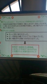 先日、ワコールのイベントプレツボミスクールへ、娘ちゃんと一緒に参加させていただきましたツボミスクールとは、小学校4年生の女の子の親子を対象に大人になる体の変化や準備などを、ワコールさんが何年もかけて作り上げたデータや資料をもとに行われている勉強会です親と子供別室で、お勉強ツボミスクールは出張、… 2015/08/26