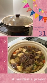 改めまして・・・あけましておめでとうございます年末は30日から正月休みに入り鳥取旅行に行って来ました。寝正月には全くならず、毎日どこかに出かけていましたがトータルでのんびり過ごせた感じで充電満タンです今年の目標は【挑戦】です。何事もチャレンジしていける1年にしたいと思います♪さて、旅行から帰ってきて大晦日の夕飯は毎年恒例のすき焼き~コンロもIHも両方使えるお鍋です。和味ノ蔵・IH対応土鍋風卓上鍋サイズ展開は一人鍋サイズ~家族用30センチ鍋まで揃っています!写真ではダイナミック差が伝わりきりませんが一番大きい30cm鍋をいただき使用しています!コンロにたいしてででーーーんと大きい!平素使ってる鍋よりさらに一回り大きい我が家はまずコンロである程度煮込んでから、ダイングテーブルでIHにかけて食べます。そこで、さらに具材を足していく方式です。5人家族の我が家にはこのサイズで良かったです!これからまだまだ食べるようになる子供達を考えると、ナイスチョイス。大人5人分を作れる大鍋って感じです。年明けにしたお鍋↓↓鶏ガラスープベースで作るお鍋でした。蓋が透明なので、中身が見えるのもいいですね~!!!お正月はいっぱい食べましたいっぱい遊びましたさぁ、今年も頑張る~♪本年もどうぞよろしくお願いいたします和平フレイズモニプラファンページファンサイト参加中