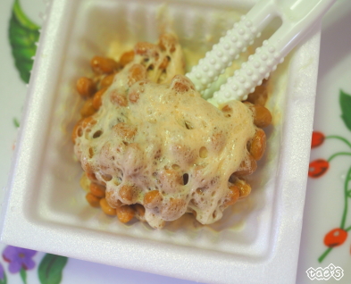 2本の棒が納豆を素早く混ぜ合わせます。