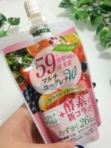 成分/原材料 エリストール、難消化性デキストリン、もも果汁、ユーグレナグラシリス、植物発酵エキス(ブドウ、オレンジ、イヨカン、イチゴ、カキ、ニンジン、トウモロコシ、レンコン、セロリ、黒豆、他)、乳酸Ca、トレハロース、ゲル化剤(増粘多糖類)、香料、酸味料、カラメル色素、甘味料(アセスルファムK、スクラロース)、原材料の一部に もも、リンゴ、バナナ、オレンジ、大豆、クルミを含む)