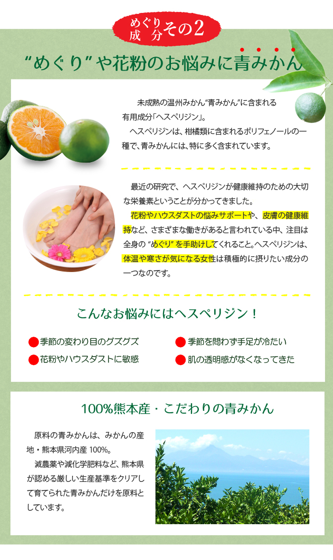冷え・鼻炎の悩みに青みかんの力 このお悩み内容が、ほぼ私に当てはまっているんですなかでも、冷え。顔...