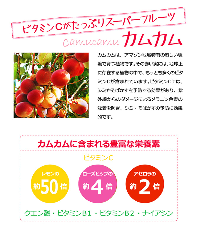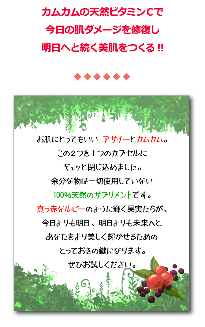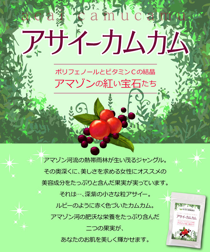 紫外線が気になる季節にポリフェノールとビタミンCの結晶アマゾンの紅い宝石たちアサイーカムカムお試しさせて...