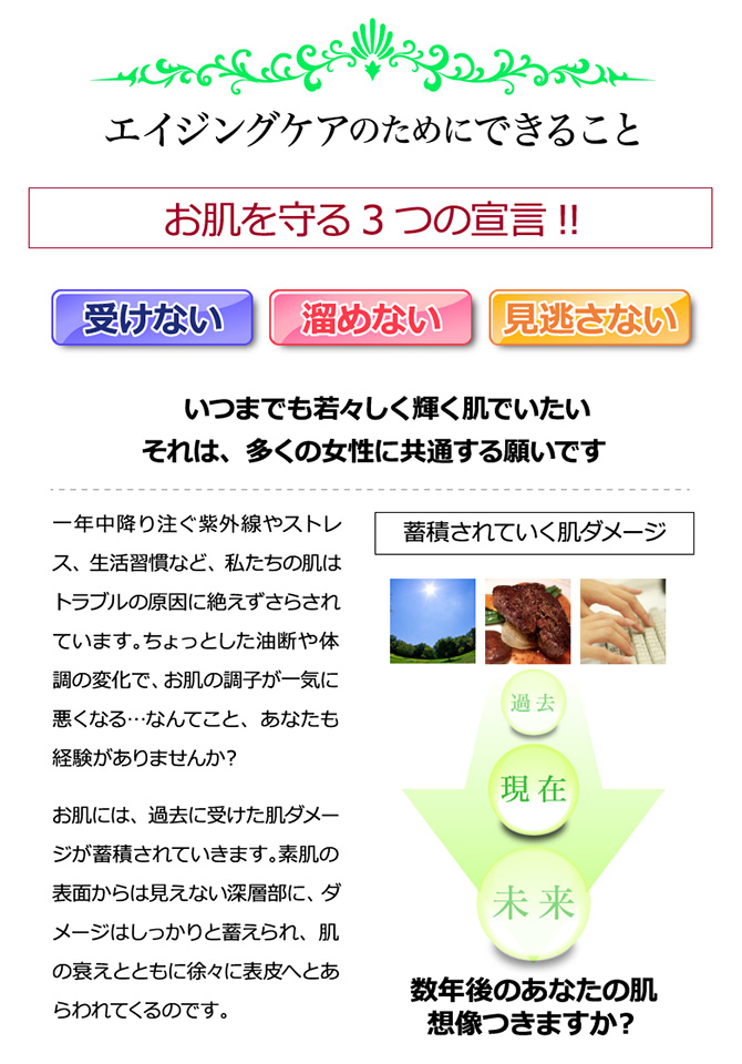 お肌を守る3つの宣言!! 肌ダメージを受けない・溜めない・見逃さない!! 2つの果実が美肌へと導きます★