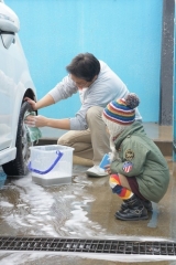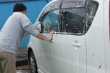 洗車の後の濡れたままのお車にシュッシュとスプレーして付属のスポンジで塗り伸ばしてクロスで拭くだけ!