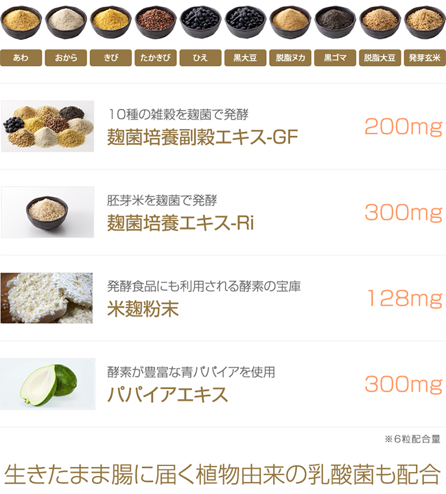 自然由来の活きた酵素に11種類のビタミンと10種類のミネラルを配合。