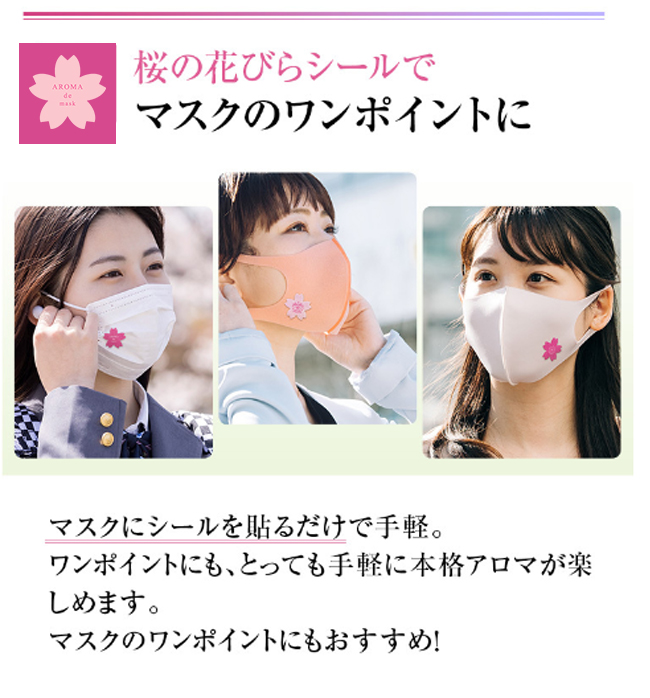 マスクに貼るだけでマスク生活を快適にするアロマdeマスクから、桜の季節にぴったりな桜柄シールの限定デザインが数量限定で新登場!