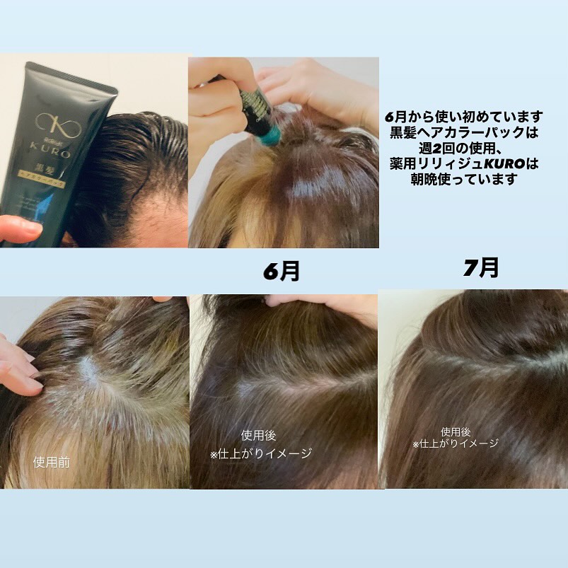 育毛×黒髪のWケア! 薬用リリィジュKURO& 黒髪ヘアカラーパック 育毛と白髪カバーの両方にアプローチが嬉しいです。薬用リリィジュKUROは頭皮に直にトントンと使えて便利。薄毛が気になる分け目中心に使用。黒髪ヘアカラーパックは付属のブラシで生え際の白髪にアプローチ。普段のトリートメントのようになめらかで使いやすい。 6月から使い初めています。白髪が徐々に目立たなくなってきたように感じています。 黒髪ヘアカラーパックは週2回の使用、薬用リリィジュKUROは朝晩使っています ○薬用リリィジュKURO [特徴] 自然素材にこだわり、「桐葉エキス」をはじめとする植物成分を独自に配合。 さらに7つの無添加処方を実現。 ○黒髪ヘアカラーパック [特徴] 染毛成分が髪表面のマイナスイオンと結合してキューティクルの隙間から浸透するため、しっかり白髪をカバー。 7種類の植物オイルと毛髪補修成分ケラチンによるトリートメント効果も。ノンシリコン処方。 #PR #富士産業株式会社 #ウェルベスト #wellbest #リリィジュKURO #女性用育毛剤 #ヘアケア #スカルプケア #黒髪ヘアカラーパック #白髪ケア #monipla #wellbest_fan