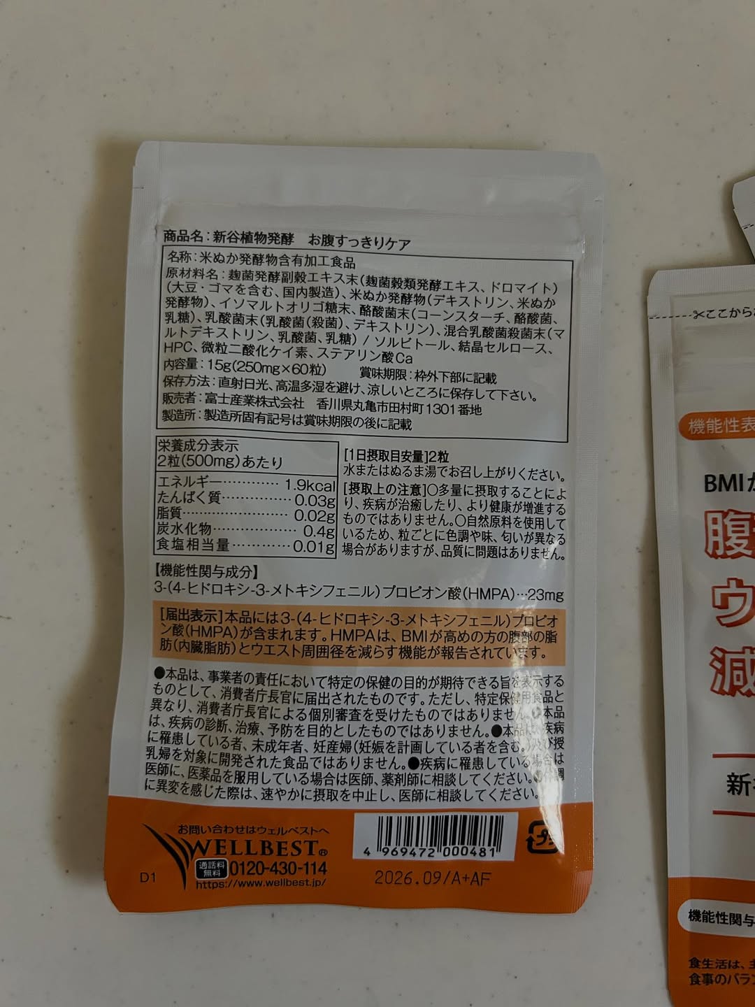 「新谷植物発酵 お腹すっきりケア」は、シリーズ累計販売個数490万個突破の新谷酵素シリーズ初の機能性表示食品です。お腹の脂肪が気になる方へおすすめの米ぬか由来の機能性関与成分HMPAと新谷酵素シリーズの特徴である穀物由来酵素や24種の善玉菌をたっぷり配合しました。HMPAには、臨床試験でお腹の脂肪とウエスト周囲径を減らす効果が確認されています。