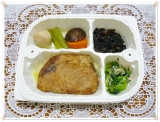 管理栄養士がつくる240キロカロリーの手作り宅配健康食 モニター最終日です メインは魚です サーモンのフライ付け合せはキャベツのおひたし アス 2012/09/30