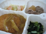 ウェルネスダイニングファンサイト参加中病棟で夜勤食として頂きました256キロカロリーですメインは野菜コロッケのカレーソース少し多めの玄米と一緒に具材がどれも大きいのが分かるでしょうか右上の牛肉と大根の煮物は味がしみていてお肉も柔らかかったです海老とイカと野菜の炊いたのも味はさっぱりしてい… 2012/10/04